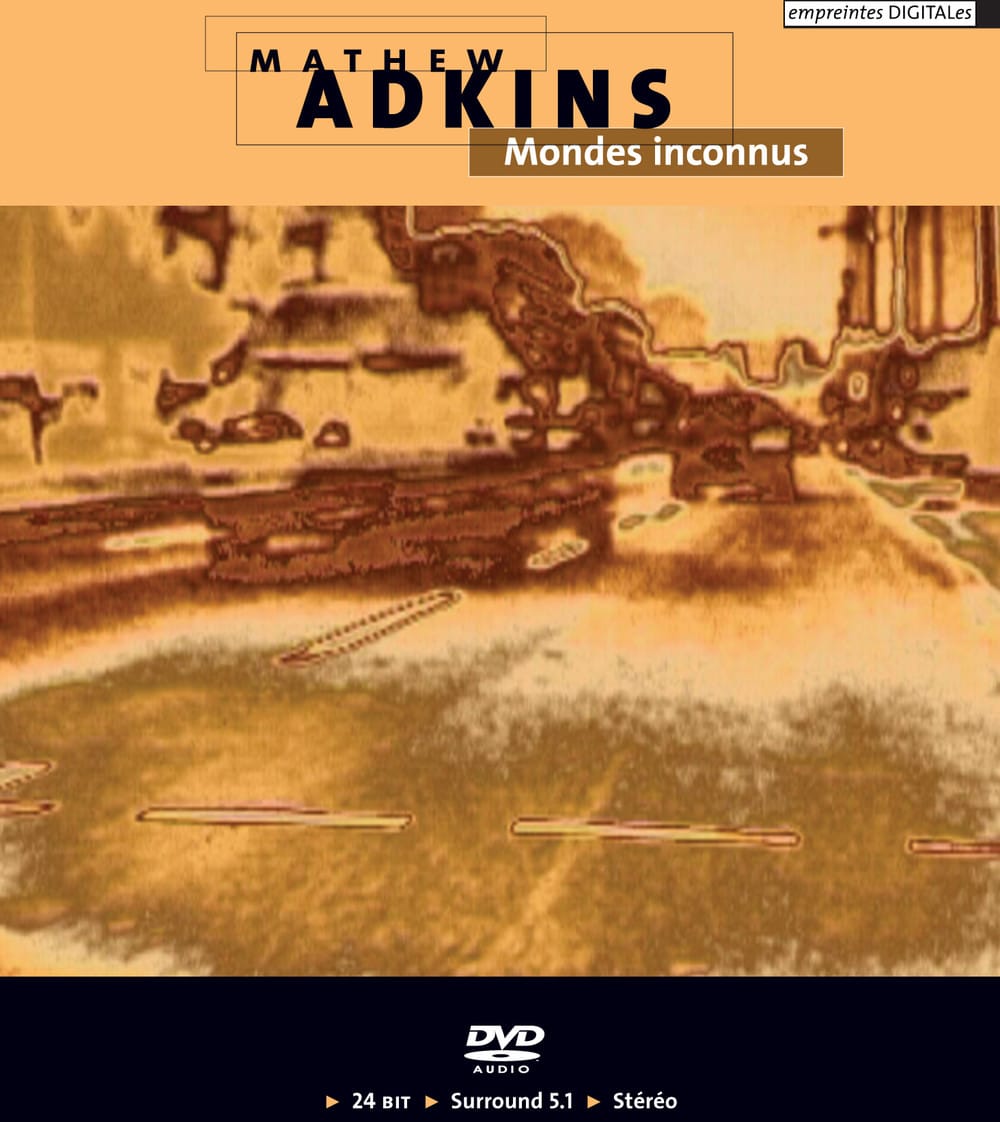 Mapping (1995-97). Aerial (2002). Deepfield (2000). Still Time (2001) pour flûte et traitement. Melt (1994). Symbiont (2002). Silk to Steel (2005). Cortex (2004-05). Il s’agit d’un DVD-Audio en plusieurs versions: Surround 5.1, Stéréo et Stéréo (Dolby Digital). “Pour moi, la composition est comme un puzzle géant dont la forme générale est déterminée, mais dont les pièces et l’image subissent des transformations subtiles en cours de réalisation. Les outils informatiques que j’utilise me permettent de définir les bords – les macro-mouvements harmoniques et rythmiques, ainsi que d’autres paramètres globaux -, tout em me permettant d’improviser avec ces éléments dans le détail. L’utilisation de ces outils me permet de manipuler le son, de jouer avec lui – comme un enfant avec une trousse de chimiste – me délectant des nouvelles couleurs et des mélanges explosifs ainsi créés.» Mathew Adkins. “Mathew Adkins est compositeur, interprète et conférencier de musique électroacoustique. Il a étudié la musique au Pembroke College (Cambridge, RU) et ensuite, en 1993, est devenu membre du BEAST (Birmingham ElectroAcoustic Sound Theatre). Il a étudié la musique électronique avec Jonty Harrison et Simon Waters. Il a fait ses premiers pas sur la scène internationale à 22 ans, avec Melt et Clothed in the Soft Horizon. Ensemble, ces deux œuvres électroacoustiques lui ont valu le Stockholm Electronic Arts Award (Suède), le Prix Résidence (Bourges, France) et le Grand Prix du Musica Nova (Prague, République tchèque). Depuis, Adkins a remporté plus d’une douzaine de prix internationaux. Ses œuvres ont été diffusées et interprétées en Europe, aux États-Unis, au Canada, en Australasie, en Chine et en Asie. Il a travaillé dans plusieurs studios européens prestigieux, dont l’EMS (Stockholm, Suède), l’Ina-GRM et l’IRCAM (Paris, France), Césaré (Reims, France) et l’Heinrich Strobel Studio (Fribourg, Allemagne). Au début des années 1990, Adkins s’est surtout tourné vers la musique acousmatique. Depuis, il a élargi ses intérêts et compose maintenant de la musique électronique pour la danse contemporaine, des œuvres multimédia et de la musique électroacoustique. C’est le processus de collaboration qui se développe entre le compositeur et l’artiste-interprète qui l’attire dans ces formes. Ses œuvres majeures dans ce domaine sont Neurotransmission (1998), une œuvre acousmatique d’une heure écrite pour le chorégraphe Wayne McGregor et le Random Dance; Still Time (2001), pour le flûtiste Alejandro Escuer; Symbiont (2002), une collaboration multimédia avec Miles Chalcaft; et nights bright daies (2003), pour le quatuor de piano et percussion Ictus. Cette dernière a été créée en juin 2004, lors du Festival Agora No 7 à l’IRCAM (Paris, France).
